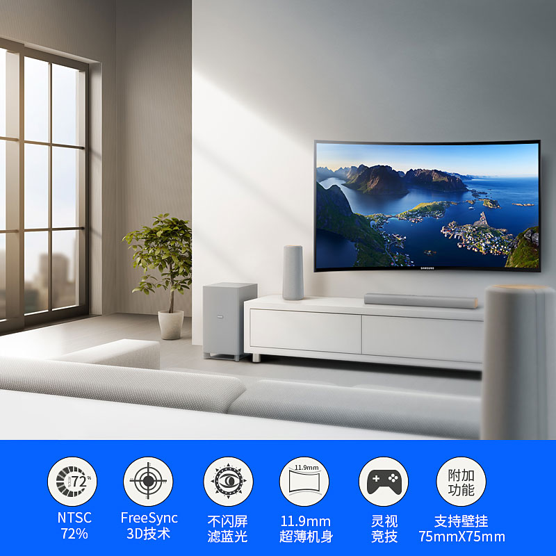 三星C24F396FH曲面显示器23.5英寸电脑显示器24液晶显示屏幕超22