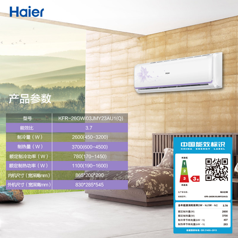 商品名称:Haier/海尔 KFR-33GW/10EBBAL13U1 1.5匹智能壁挂式家用空调挂机 智能操控 快速冷暖 送装一体