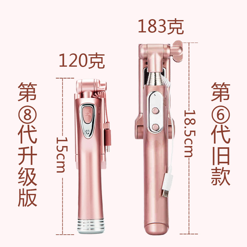 手机通用自拍杆苹果自牌杆iphone7蓝牙补光华为vivo拍照神器干6s 全新第八代 自动连接 手机通用